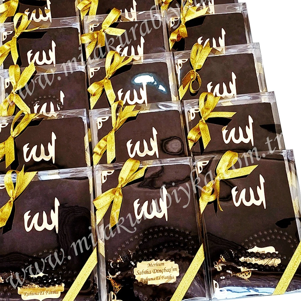 Bu set, vefat sonrası düzenlenen mevlüt, kırkı mevlidi veya anma etkinliklerinde dağıtılmak üzere tamamen kişiye özel olarak hazırlanmaktadır. Her detay, sevdiklerinizin adını en güzel şekilde anımsatmak için el işçiliğiyle hazırlanmaktadır.