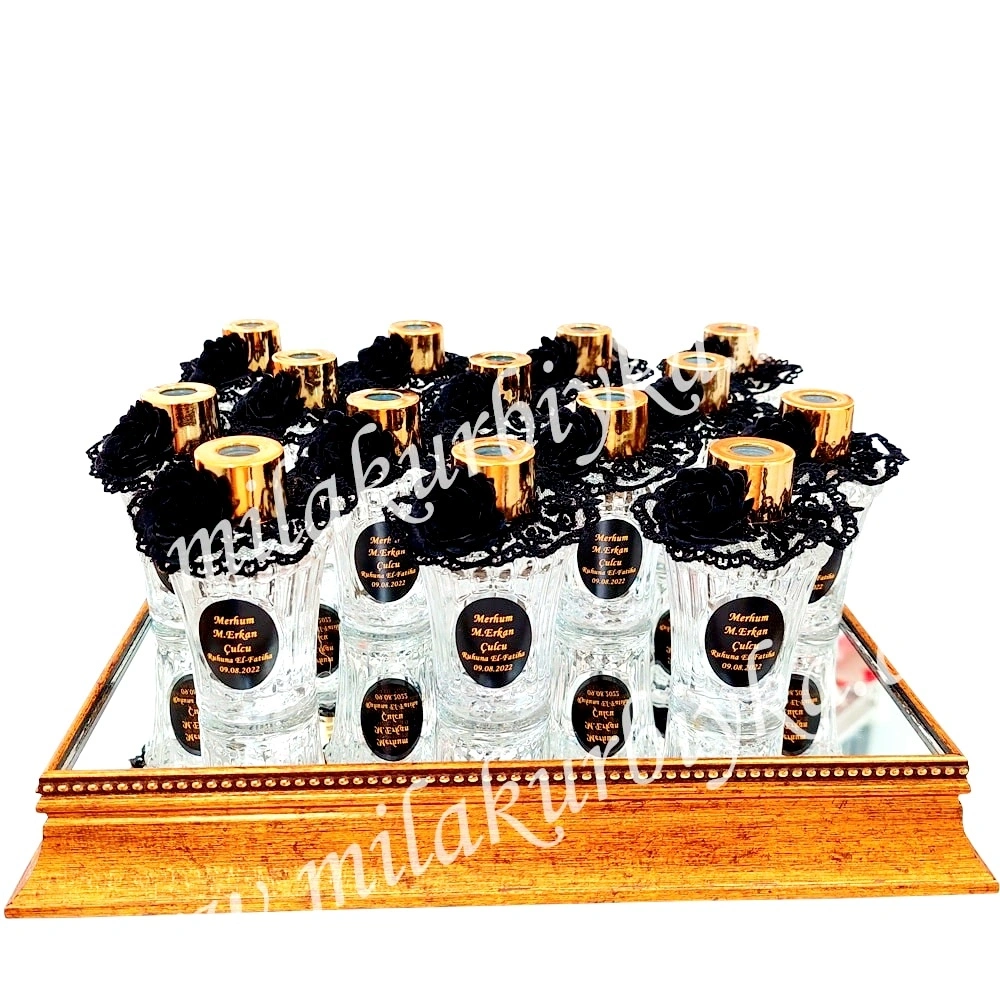 * Özel Tasarım Kolonya: Kutulu, dantel ve siyah gül detaylı, ferahlatıcı limon kolonyası ( 50 cc cam şişe )