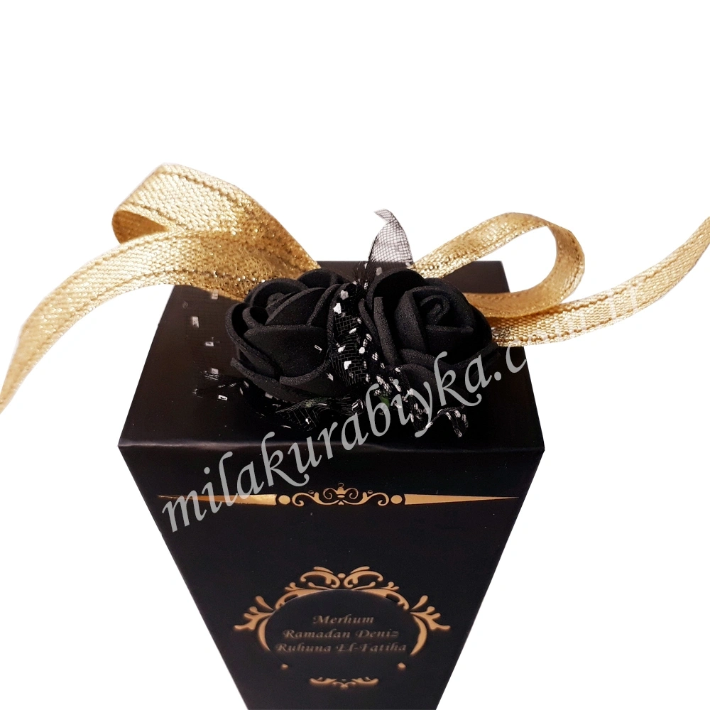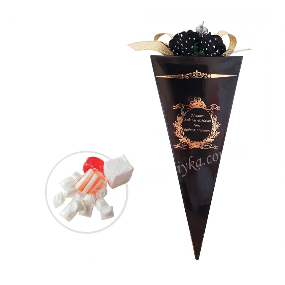 Özel günlerinizin anlamını, şıklıkla taçlandırın. Siyahın asaletini altın varak ışıltısıyla birleştiren bu özel tasarım külah, mevlüt davetlerinizde misafirlerinize sunabileceğiniz en zarif hatıralardan biridir.